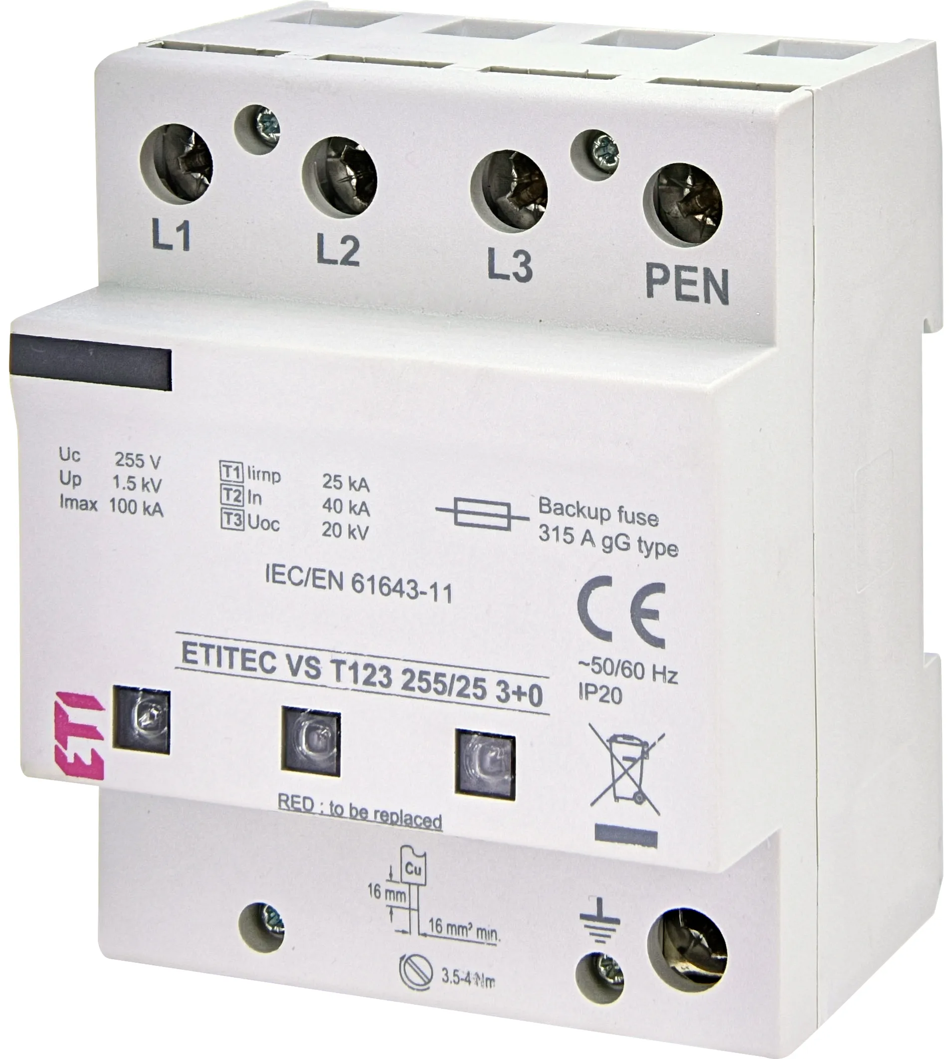 Protecție supratensiuni ETITEC VS T123 255/25 3+0 002442937